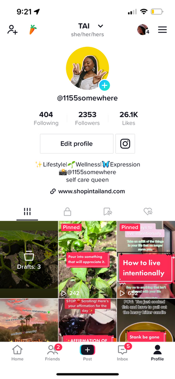 I have had instagram since college (2012) and tiktok as of last year (2021) and I have been consciously growing them both since the beginning of 2022. I have built an relationship with my audience by being authentic and presenting them with self help tips, wellness, relatable stories, thought provoking materials and showing the behind the scenes of a 20 something. who is still trying to figure it all out.